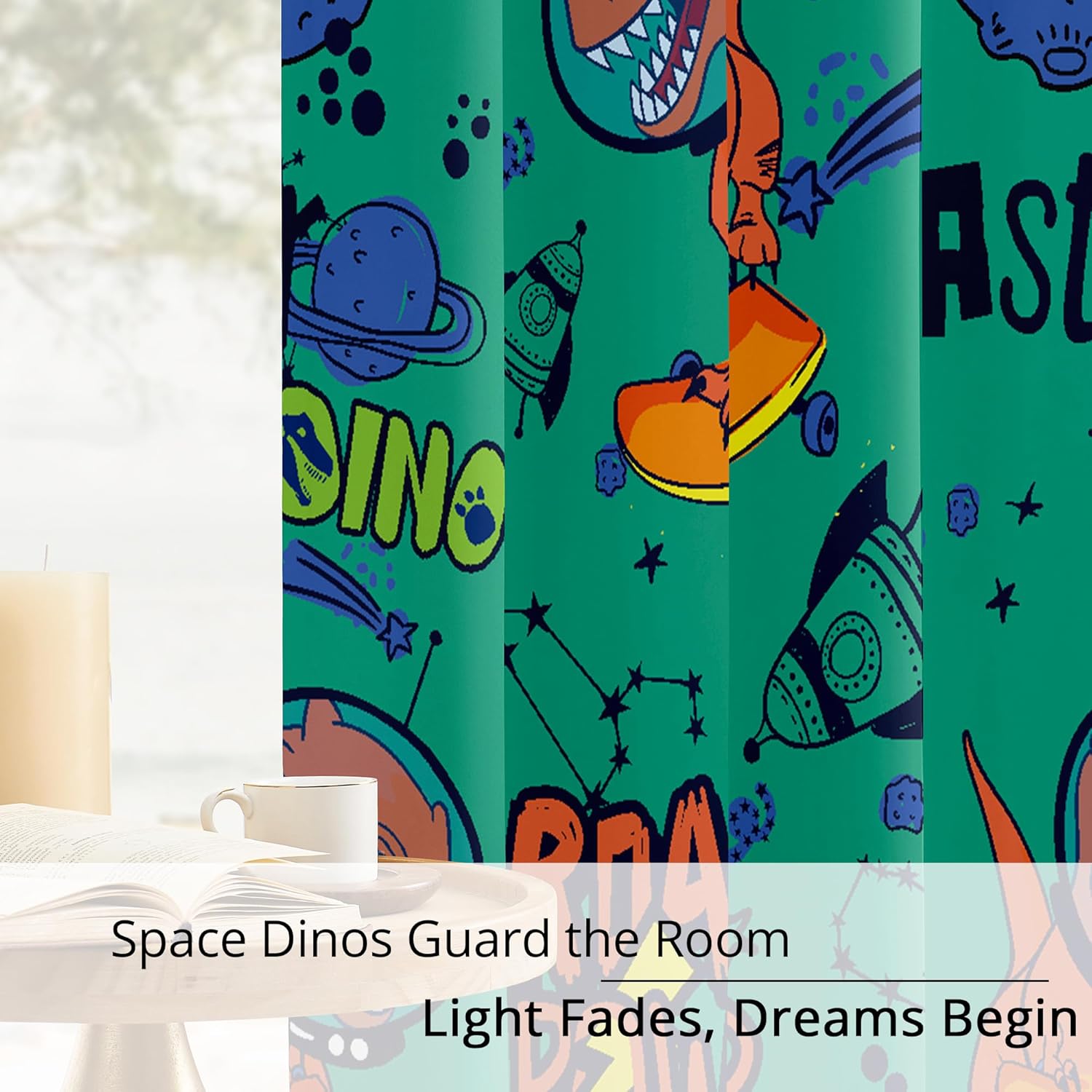 Kids Space Dinosaur Blackout Curtains - 100% Blackout, Thermal Insulated, Noise Reducing, Perfect for Kids Room and Nursery, 2 Panels (Roar Power Dino, W52×L63)