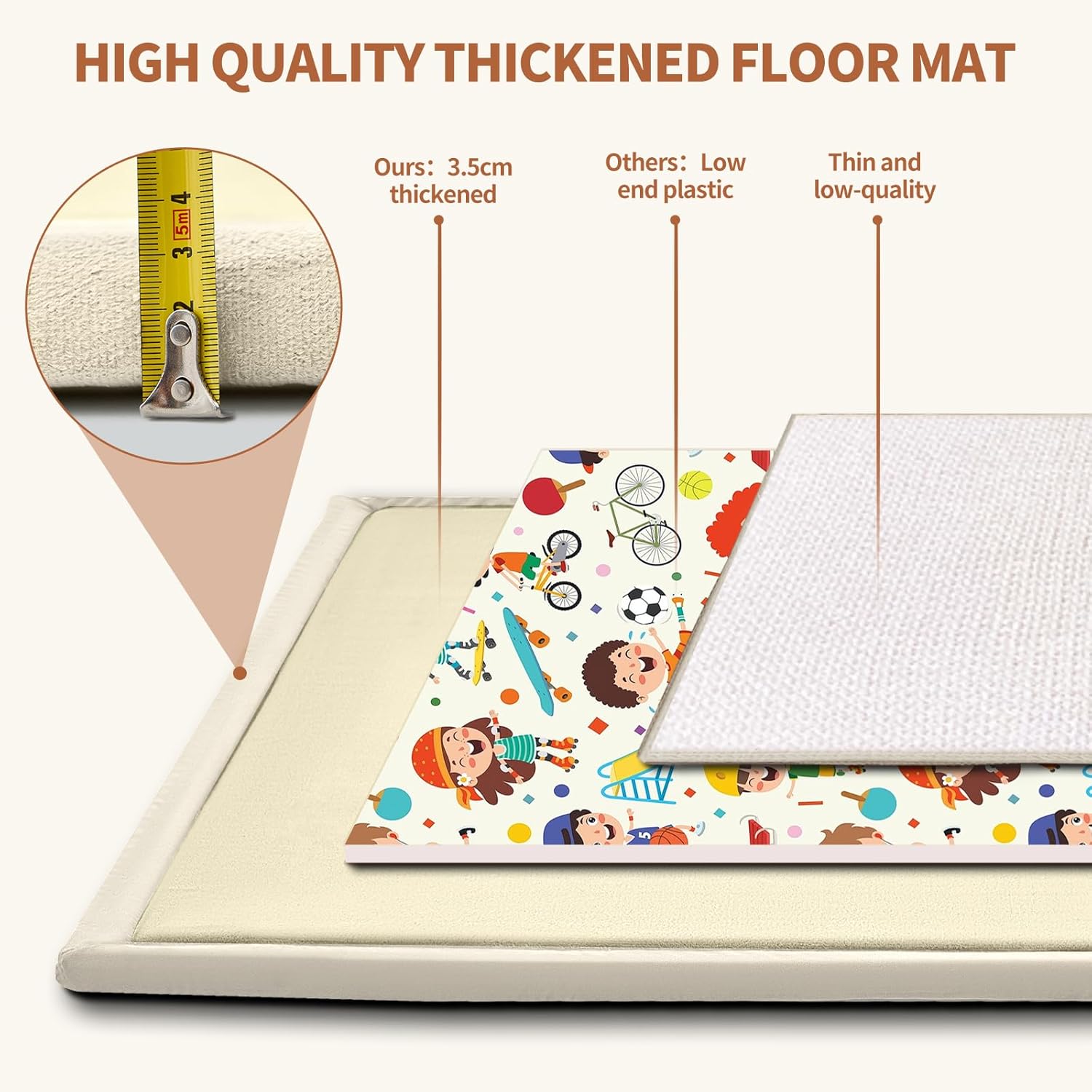 SUNYRISY Baby Play Mat for Floor 80 x 80in, 1.4in Thick Memory Foam Padded Play Mats Baby Rug, Soft Velvet Infants Toddler Kids Crawling Mat for Nursery, Non-Slip Bottom, Beige