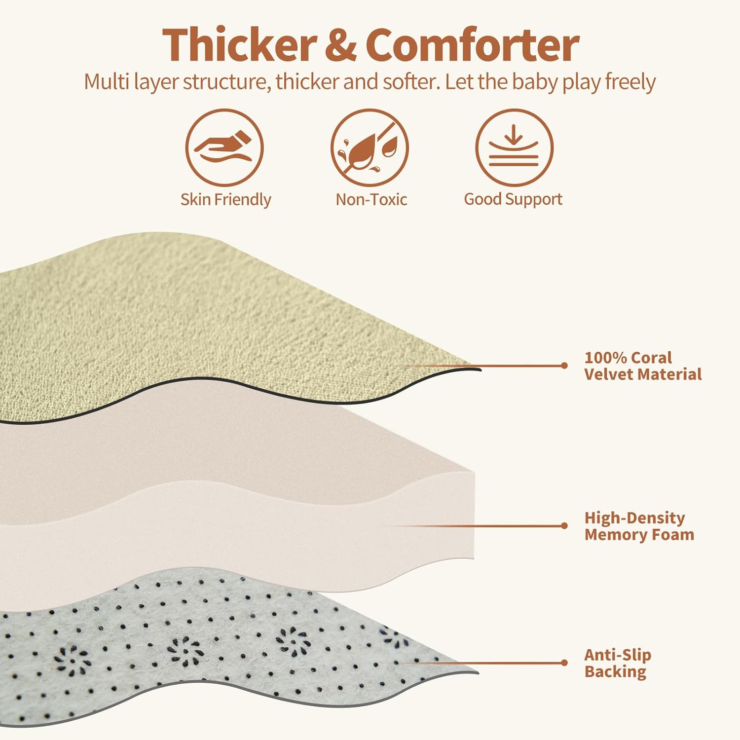 - 【1.4in Thickened Memory Foam Play Mat】Crafted from ultra-soft velvet fabric with high-density memory foam padding, this play mat measures approximately 1.4 inches thick. The SUNYRISY nursery baby rug offers a breathable, comfortable surface that is gentle on baby's skin and resistant to color fading. Its thick padding helps cushion falls, making playtime safer and more enjoyable for toddlers