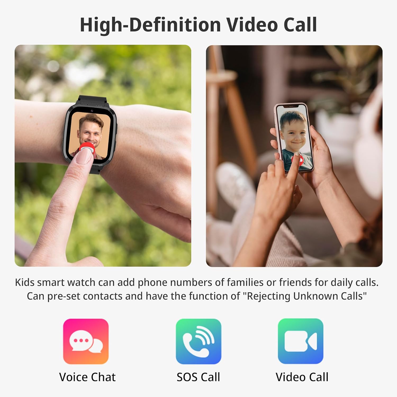 - 【Video Phone & Voice Chat & Texting】 - Kids smart watch boys has these three major functions, allowing parents to communicate with their children at any time, making it easy to understand their children's situation to bring everyone closer together.Children can also make friends and chat with each other using kids watches.